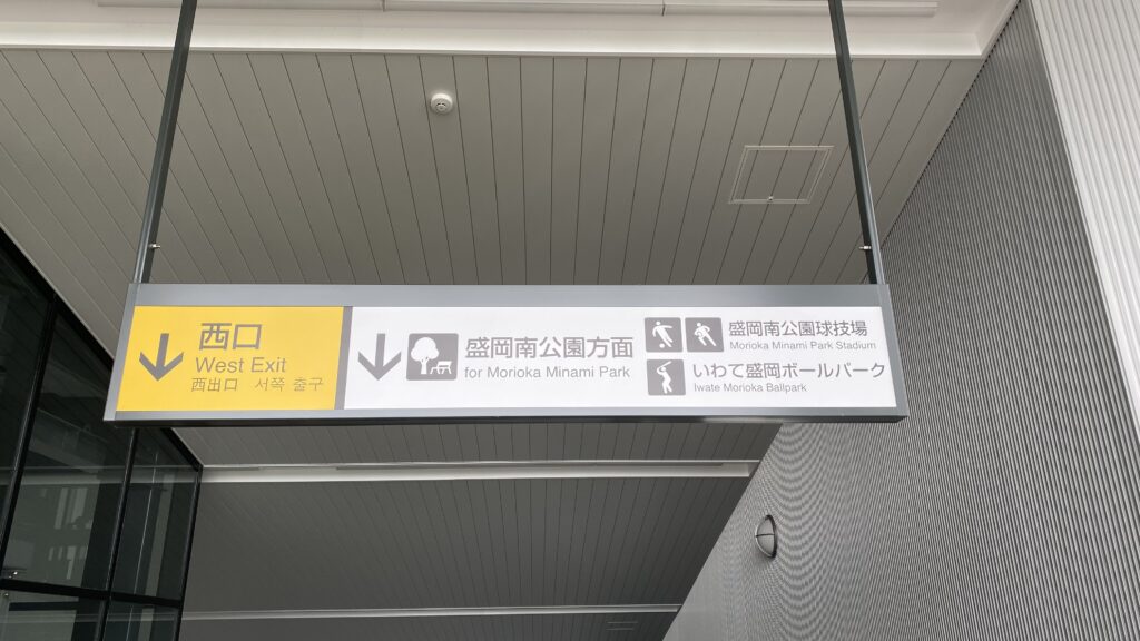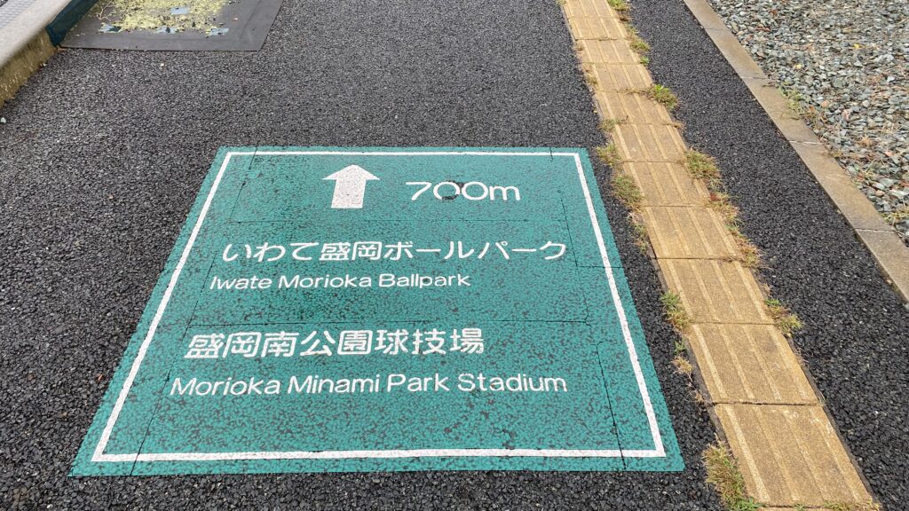 こんな感じで途中には「いわて盛岡ボールパーク」までの距離と案内図があるので迷う心配ななし。