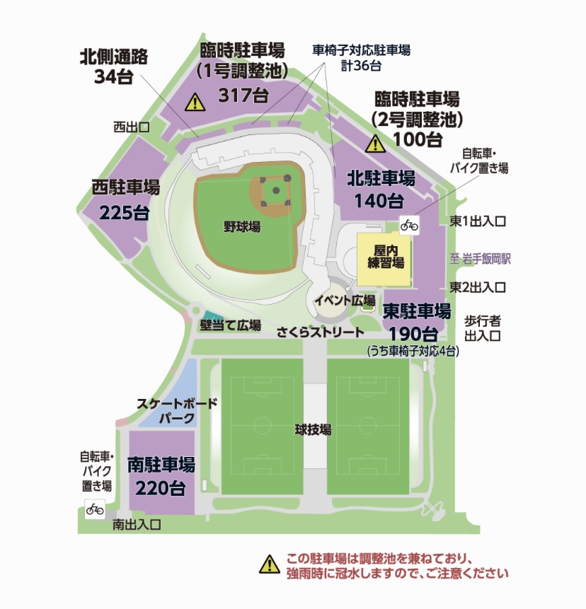 「いわぎんスタジアム」(サッカー場)へは「東駐車場」が1番近く、こちらがその東駐車場。
